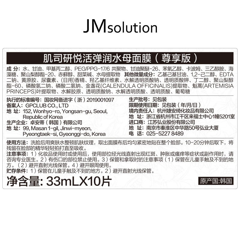 JMSOLUTION肌司研悦活弹润水母面膜尊享版33ml*10