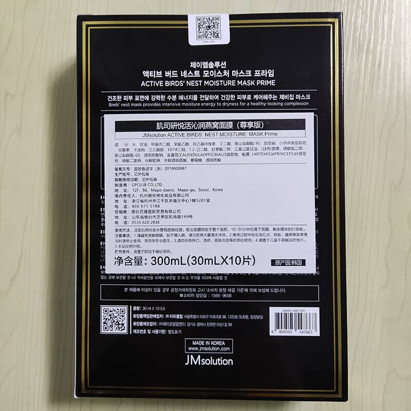 JMSOLUTION肌司研悦活沁润燕窝面膜30ml*10