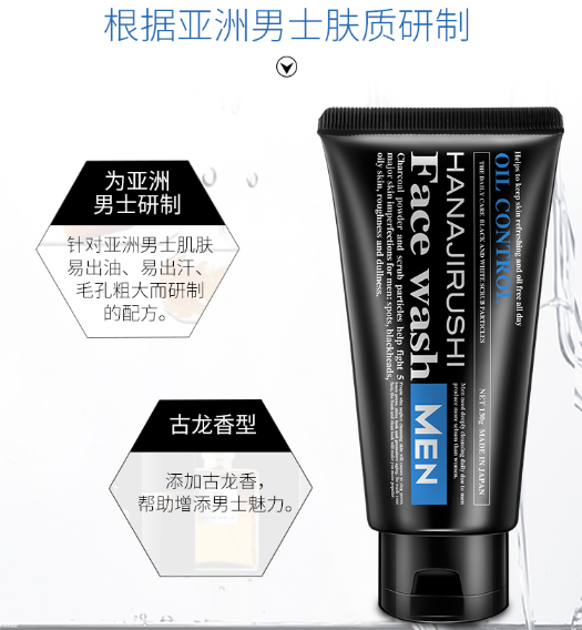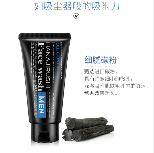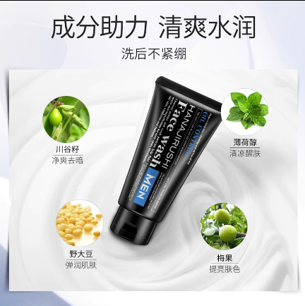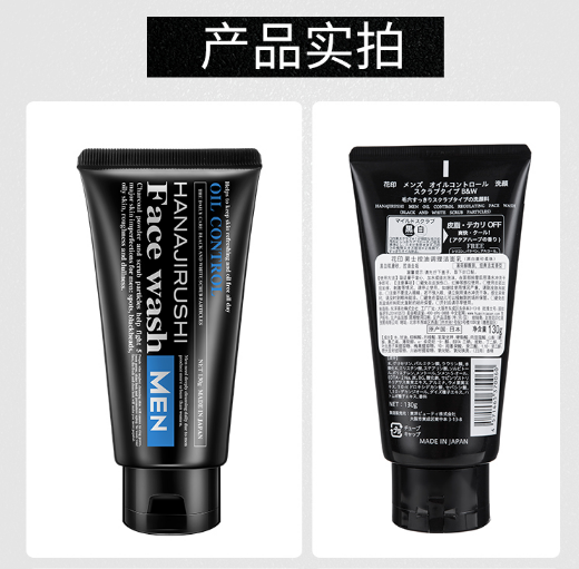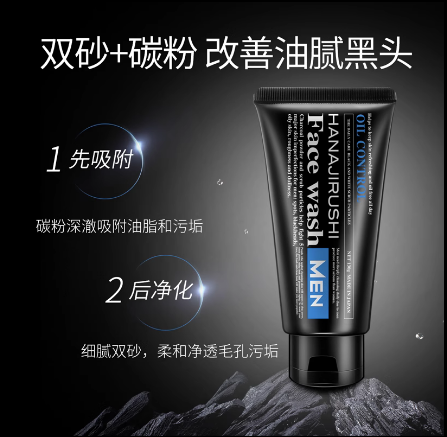 花印男士控油调理洗面乳黑白磨砂柔珠130g