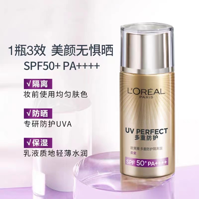 欧莱雅新多重防护隔离露美颜柔紫40ml